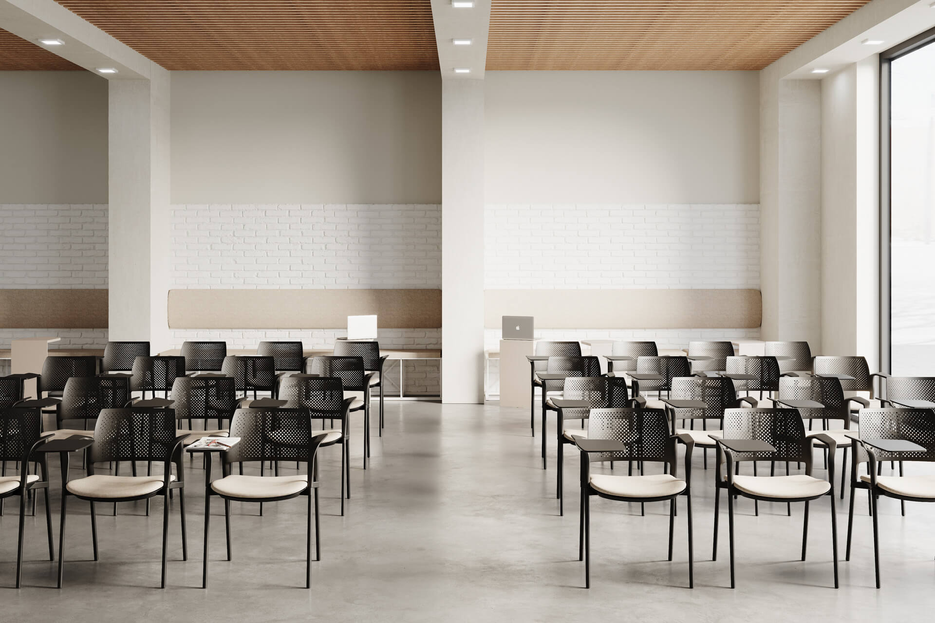 Nowoczesne połączenia tworzywa z metalem z bardzo wygodnym siedziskiem i różnymi typami świetnie wyprofilowanego oparcia. Stelaż klasyczny, na kółkach lub na płozie – ten ostatni zapewnia wyjątkowy komfort na dłuższych spotkaniach. Oparcie siatkowe, tapicerowane lub z charakterystycznie perforowanego tworzywa pozwala w tej samej kolekcji krzeseł zróżnicować strefy. Niezwykłą funkcjonalność daje im możliwość zamontowania pulpitu lub łączenia w rzędy. Do wyboru w różnych materiałach i kolorystykach.