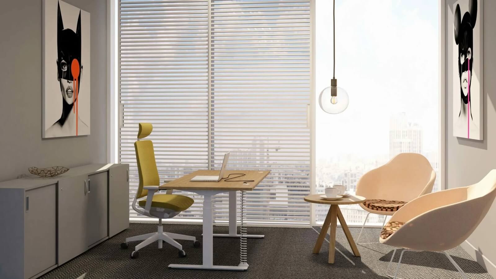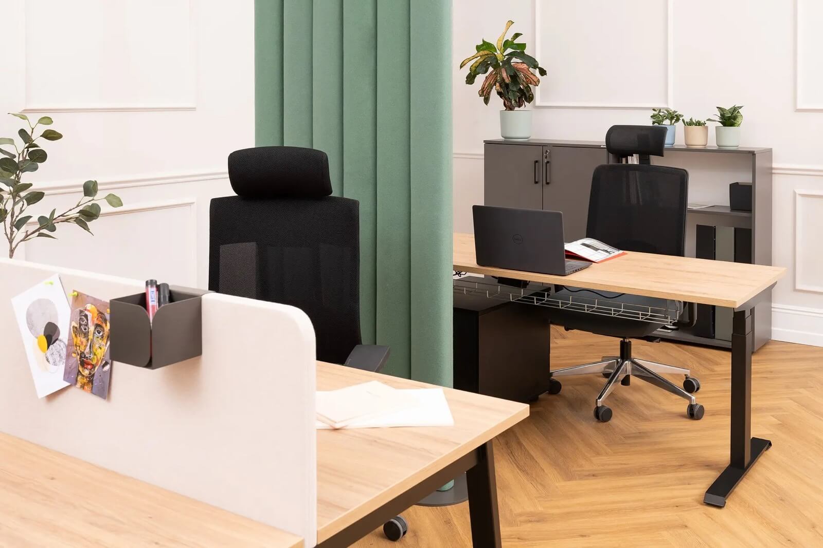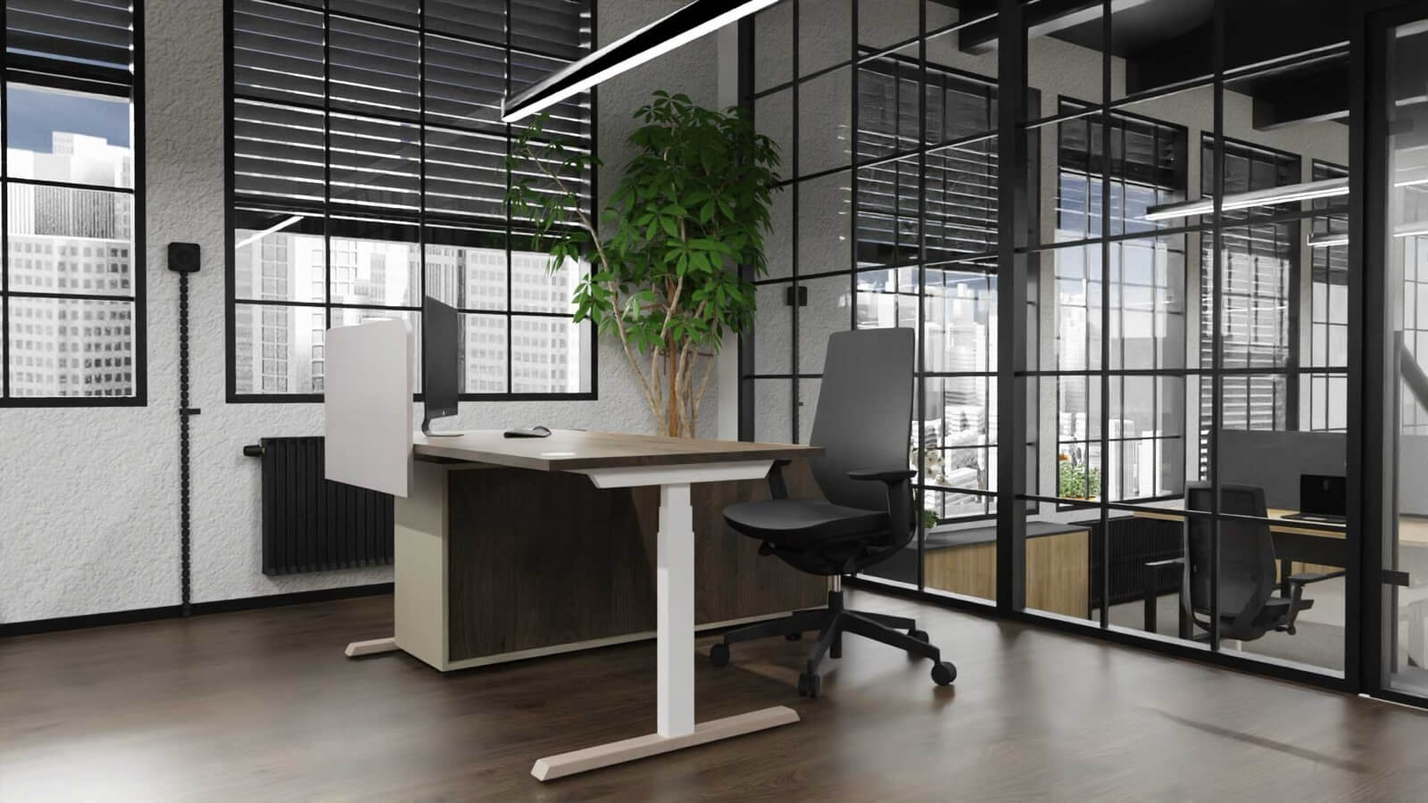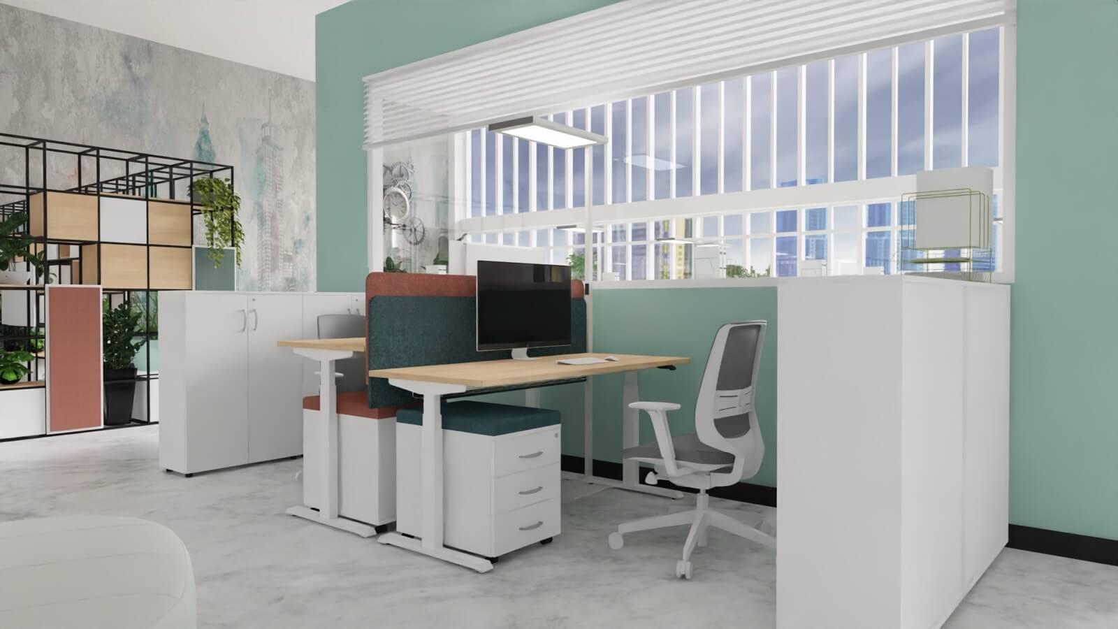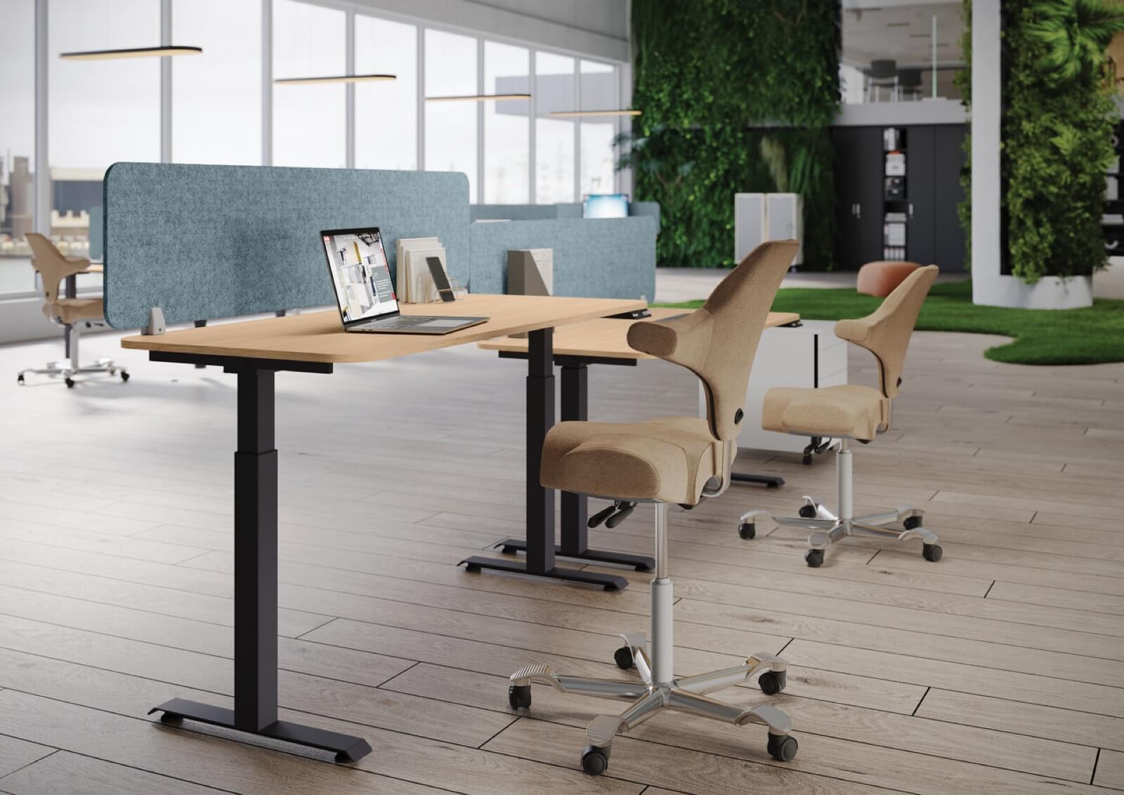 Nowoczesne i ergonomiczne rozwiązanie, które umożliwia płynną regulację wysokości blatu za pomocą wbudowanych siłowników elektrycznych. Różne opcje sterowania od prostych rozwiązań na przyciski podblatowe do możliwości obsługi i kontroli przez aplikację mobilną. Wersje zaawansowane pozwalają zapamiętać dostosowane do użytkownika pozycje blatu oraz posiadają zabezpieczenie antykolizyjne, by zatrzymać biurko podczas ruchu w dół. Występują zarówno jako biurka pojedyncze, jak i układy typu bench.