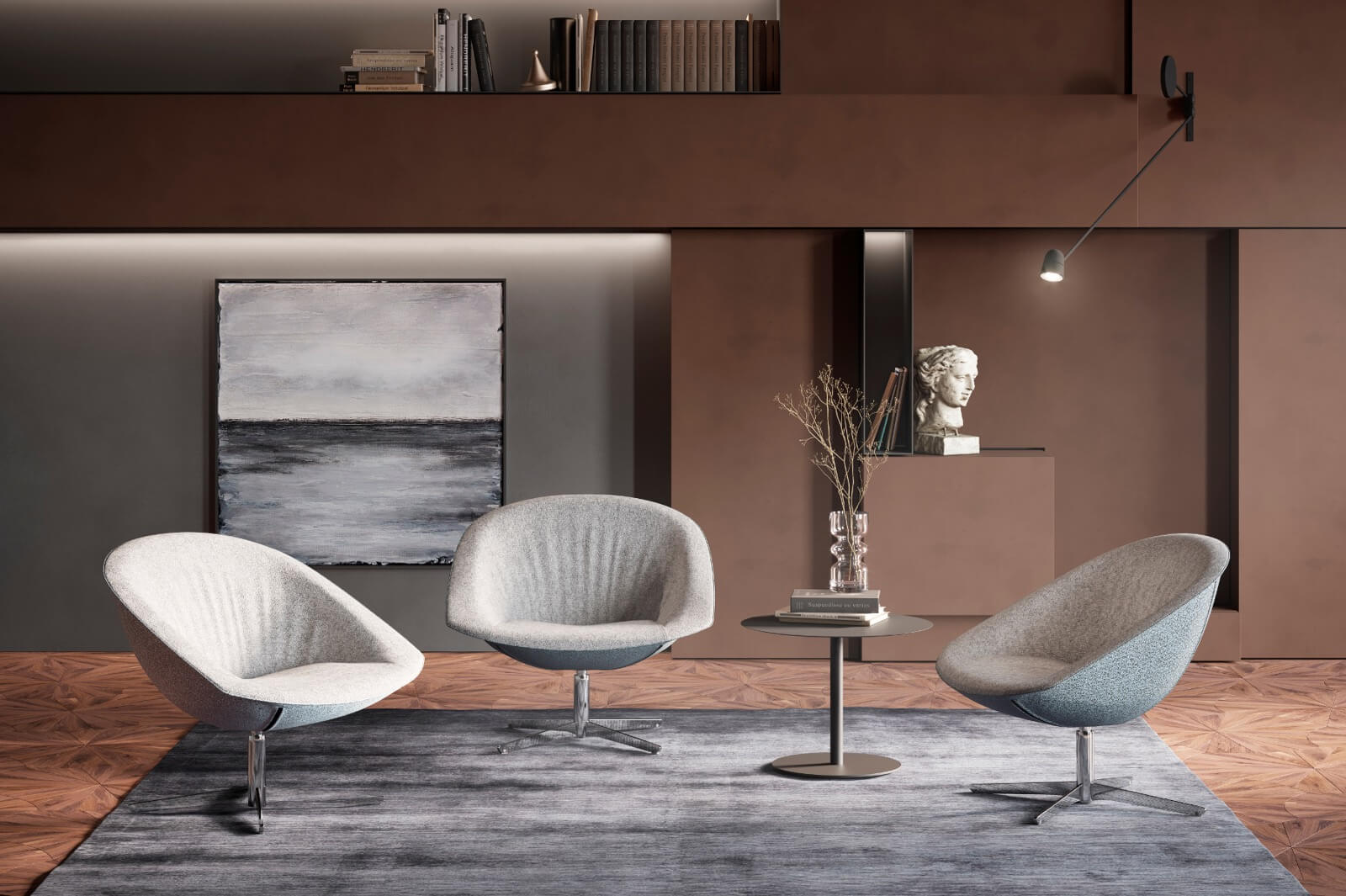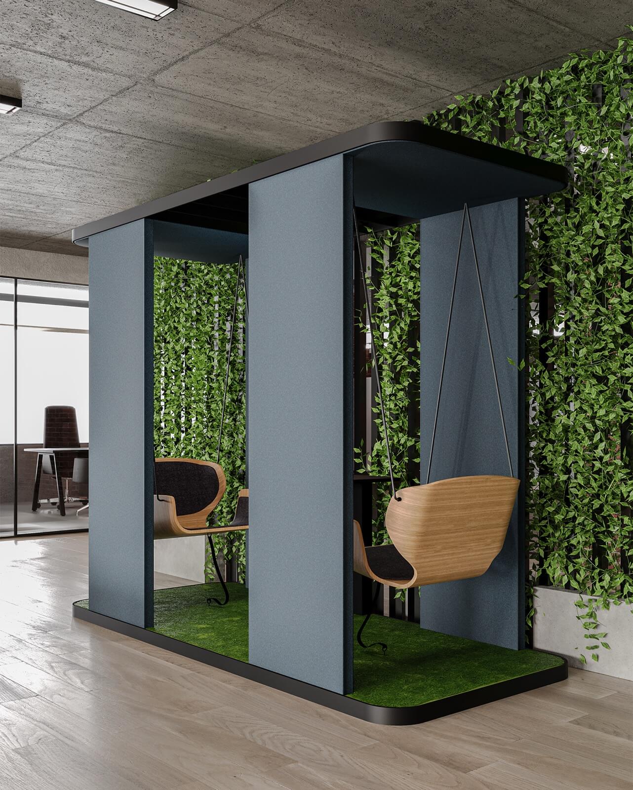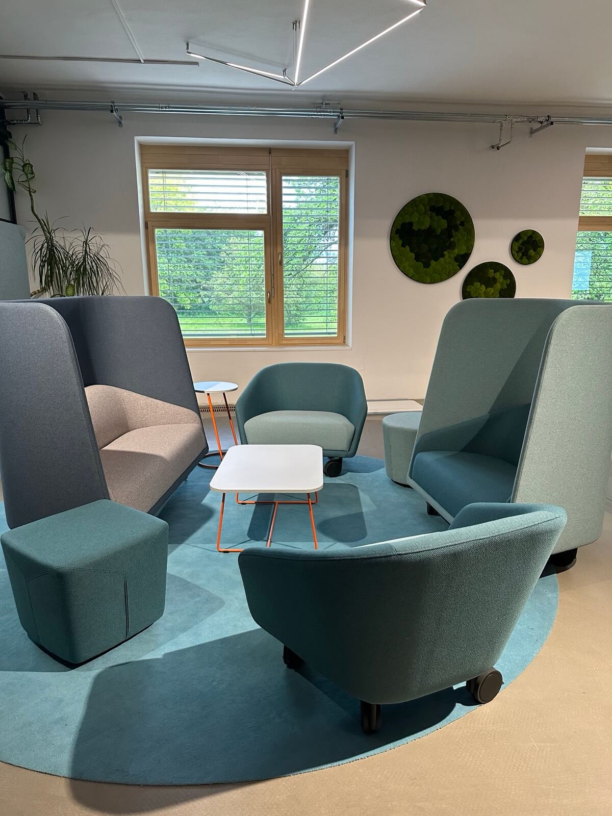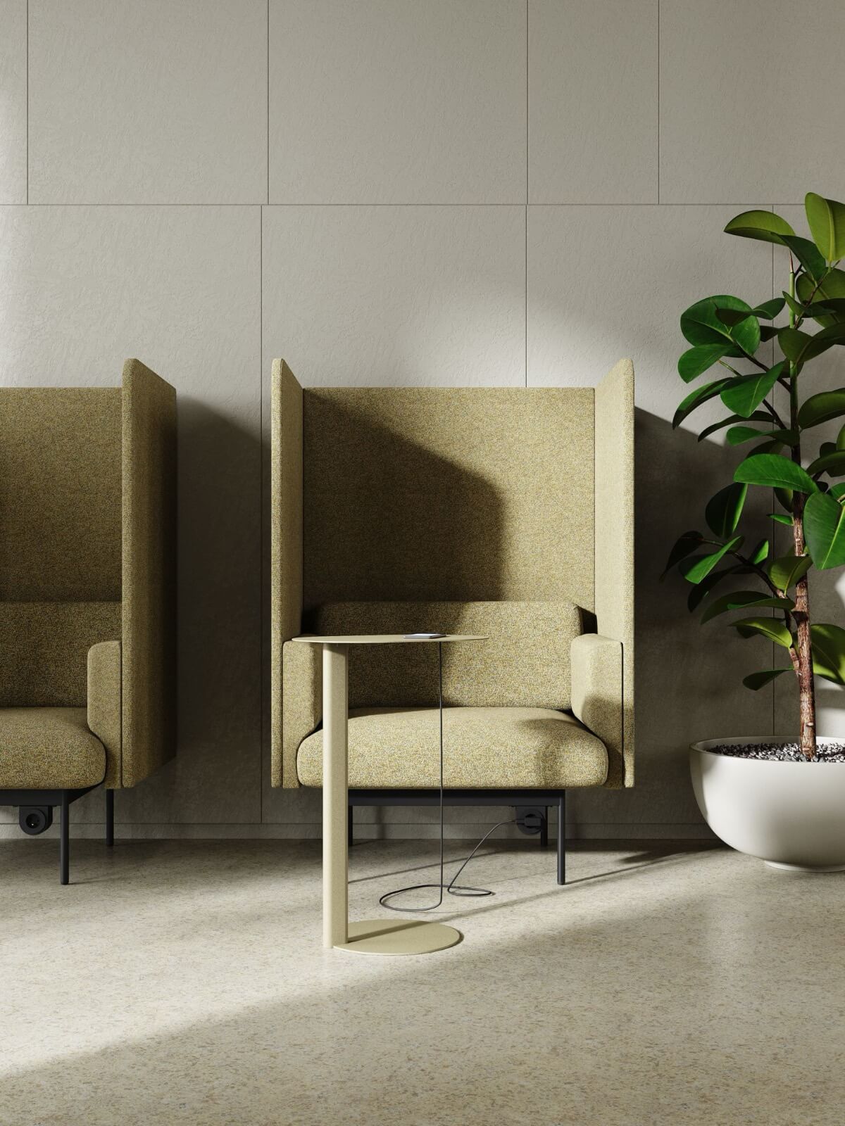 Zapewniają wygodę i komfort, ale też znacząco wpływają na odformalizowanie przestrzeni pracy. Tworzą idealne miejsce do relaksu lub nieformalnych spotkań. Doskonale sprawdzają się w strefach recepcyjnych, chilloutowych, a te wyższe zwłaszcza również w open space, jako przełamanie wizualno-akustyczne stricte biurowej przestrzeni.