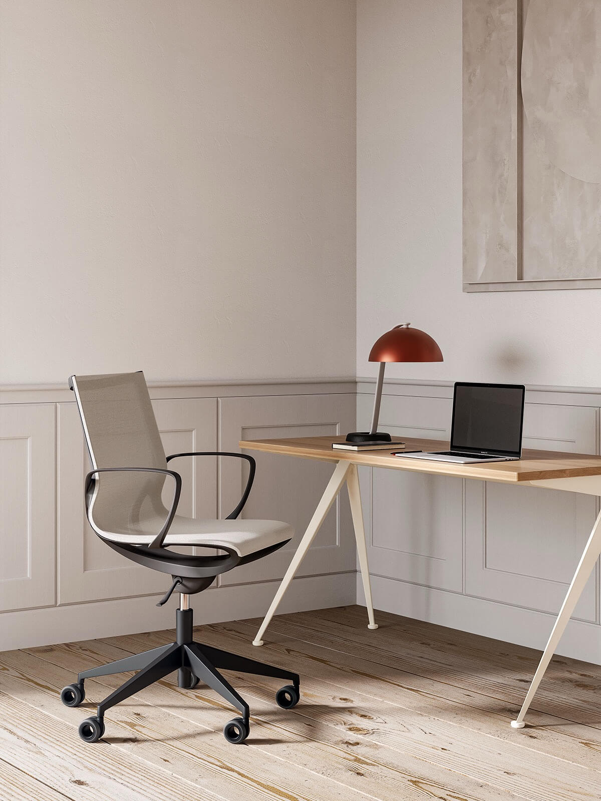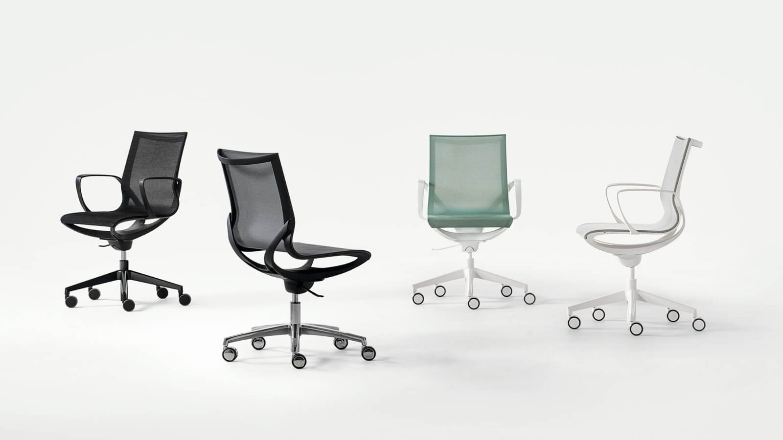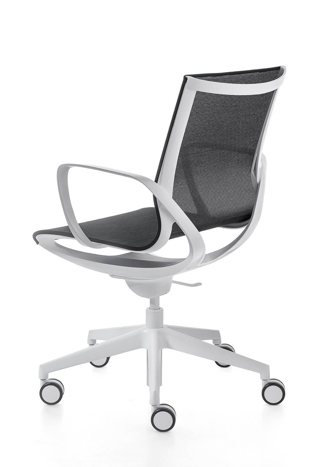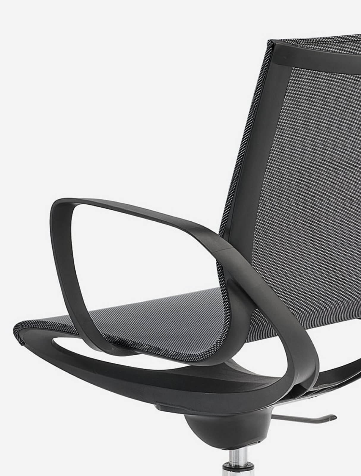 Key Line Krzesło o smukłej i prostej konstrukcji. Dostępny w wykończeniu białym lub czarnym, z oddychającą siatką w kolorze czarnym, beżowym, szarym i zielonym. Dzięki wyprofilowanej siatce świetnie dopasowuje się do użytkownika. Posiada mechanizm kołyskowy i regulację wysokości.