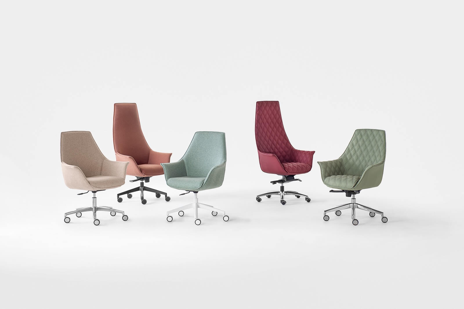Kolekcja gabinetowa Kimera jest bardzo charakterystyczna w swojej formie dzięki możliwym do dodania przeszyciom w kształcie rombów. Fotele dostępne są w wersji niskiej oraz wysokiej oparcia.