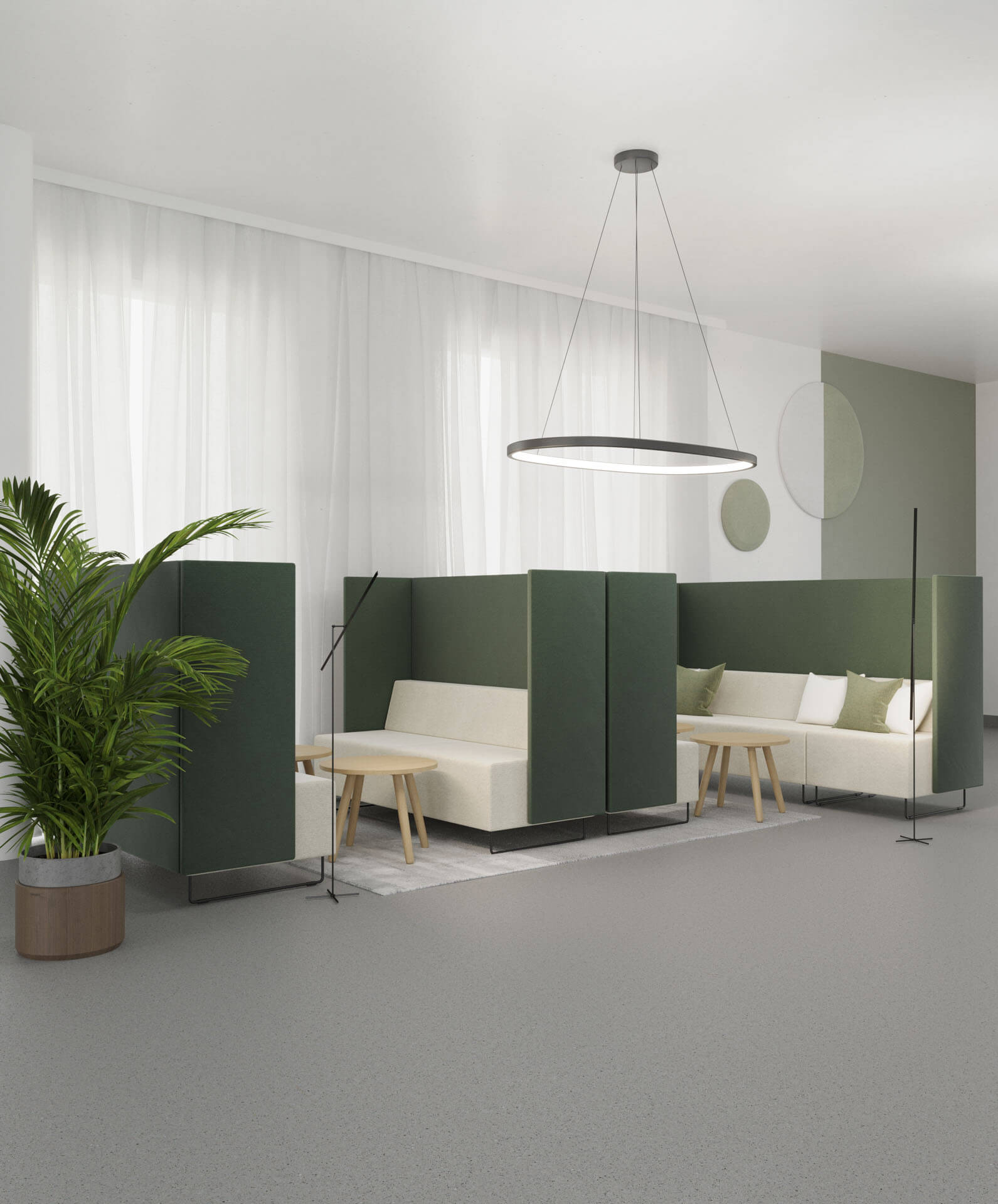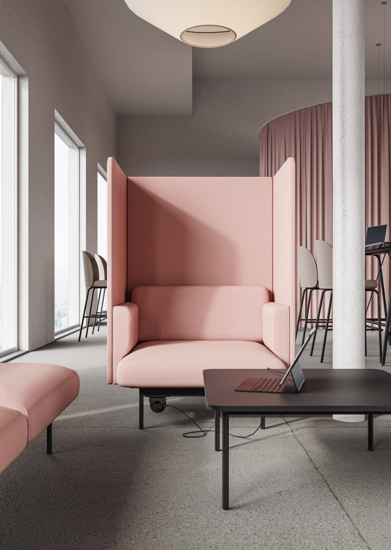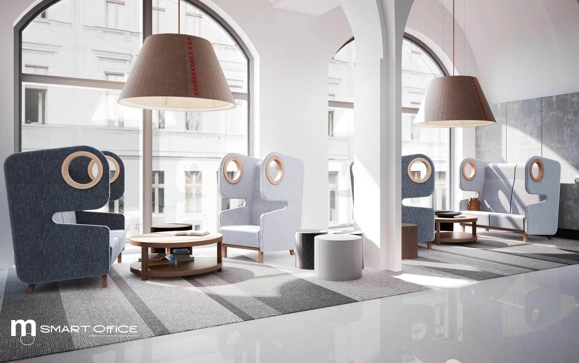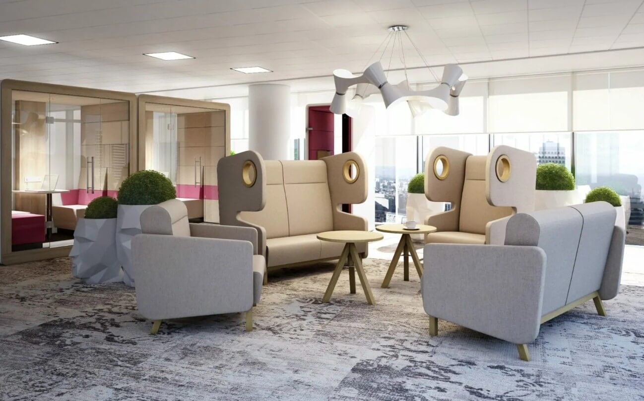 Mają za zadanie łączyć komfort z izolacją dźwiękową, co sprzyja koncentracji i poczuciu prywatności. Fotele i sofy wyposażone w wysokie oparcia lub ścianki czy specjalne boksy do pracy skutecznie redukują hałas, tworząc idealne warunki do skupienia i odpoczynku. Dają też jakże ważne odczucie izolacji wizualnej. To idealna metoda na elastyczne kształtowanie wnętrza, bo w przeciwieństwie do różnorodnych zabudów łatwo je relokować. Rozwiązania takie są często stosowane w holach i strefach wejściowych, lobby, strefach chillout, przestrzeni hotelowych i restauracyjnych. Pomożemy Co stworzyć przy ich udziale przytulne, wydzielone miejsca, które zapewniają gościom i pracownikom komfort i prywatność sprzyjając relaksowi i kameralnym spotkaniom.