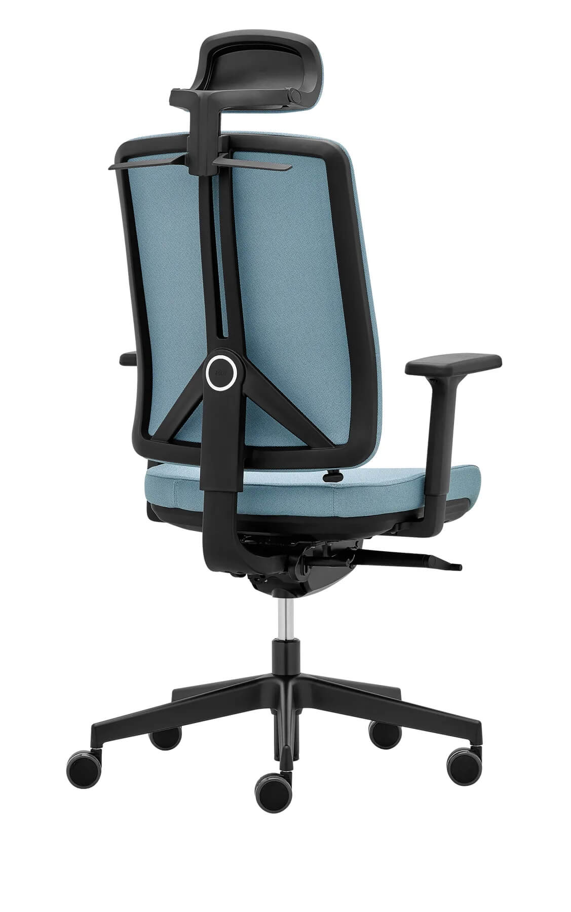 Jeden z ciekawszych foteli biurowych w swojej grupie cenowej – świetnie prezentuje się z tyłu, gdzie zazwyczaj jest w biurze oglądany. Zaprojektowany z myślą o wygodzie i wykonany na wysokiej jakości przebadanych komponentach zapewnia nie tylko komfort, ale i długotrwałe, bezawaryjne użytkowanie. Idealnie przemyślany regulowany zagłówek mocno wysunięty w stronę siedzącego, jest świetnym rozwiązaniem dla osób z bólami karku. 3 różne dedykowane mechanizmy synchronicznego odchyłu zadowolą nawet najbardziej wymagających, dlatego fotel ten jest wybierany przez firmy szczególnie dbające o pracowników. Możliwość różnorodnego konfigurowania kolorystyki i opcji.