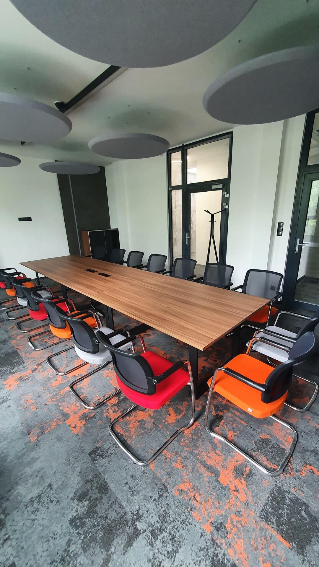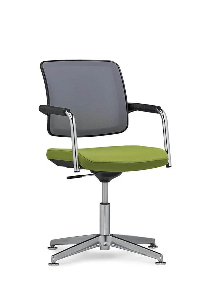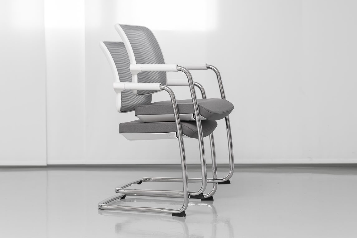 Tapicerowane obszerne siedzisko w połączeniu z ergonomicznym siatkowym oparciem oraz stelażem w formie płozy przechodzącej płynnie w podłokietniki sprawia, że jest to jedno z wygodniejszych krzeseł konferencyjnych dostępnych na rynku. Może występować także w wersji eleganckiej bazy aluminiowej na kółkach lub ze stopkami. Idealne krzesło na długie szkolenia i narady. Dodatkowym atutem jest nawiązanie wzornicze do rodziny Foteli obrotowych  o tej samej nazwie, dzięki czemu można osiągnąć spójne efekt stosując je razem w tych samych przestrzeniach. Do wyboru w różnych tapicerkach, oraz w ciekawych rodzajach siatek łączących tonacje szarości, bieli i niebieskich wstawek.