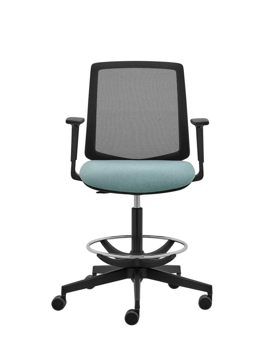 Wygodne krzesło konferencyjne powiązane wzorniczo z linią foteli biurowych. Charakterystyczny kształt wyprofilowanego oparcia zapewnia efekt lekkości i komfort użytkowania. Co rzadkie – występuje także jako hoker z drążkiem na wysokiej sprężynie z footringiem (podnóżkiem) – świetny jako krzesło do stanowisk obsługi klienta. Do wyboru w czarnym i białym tworzywie oraz wielu różnych tapicerkach.