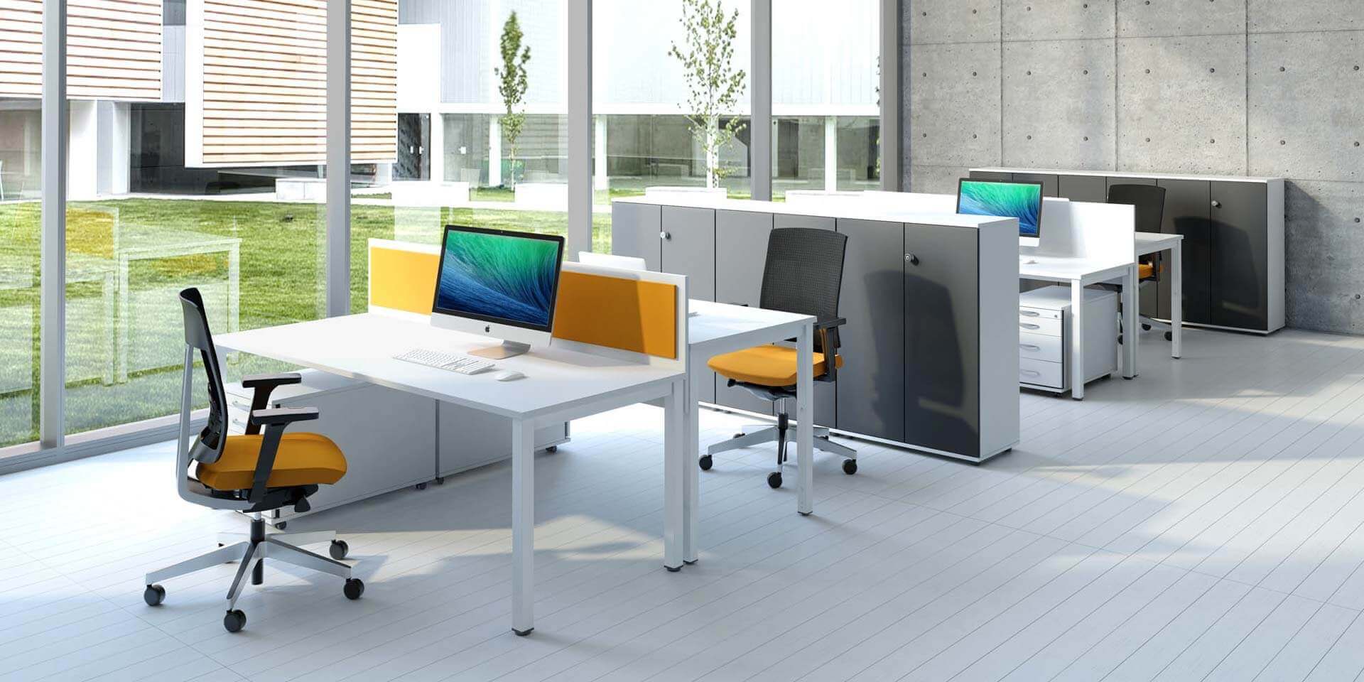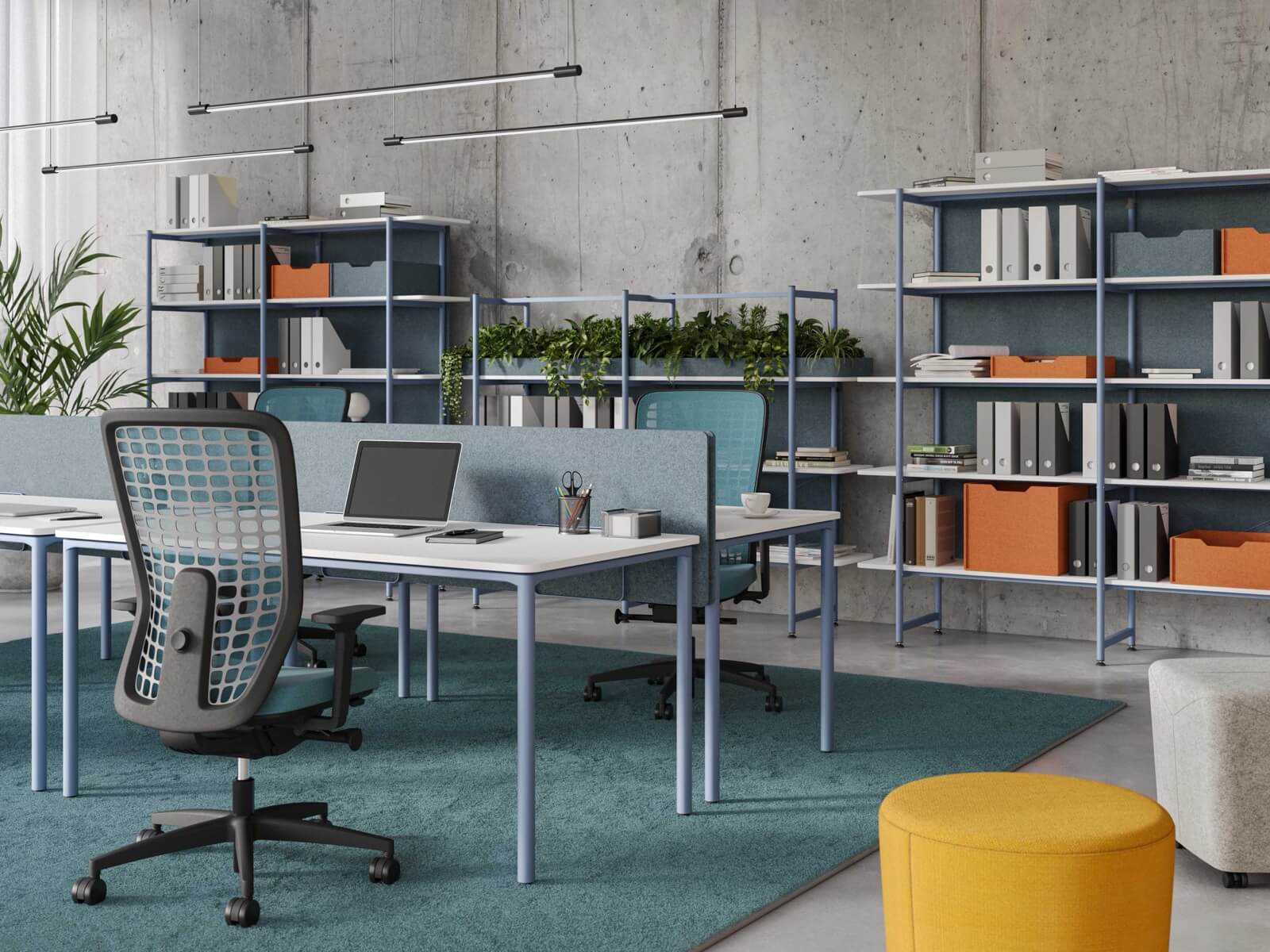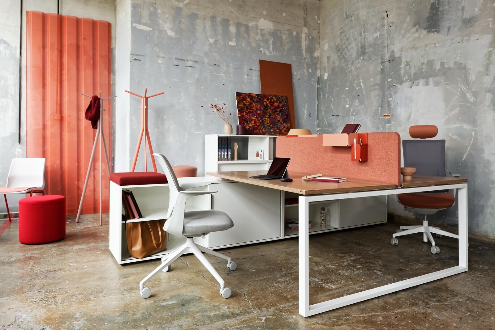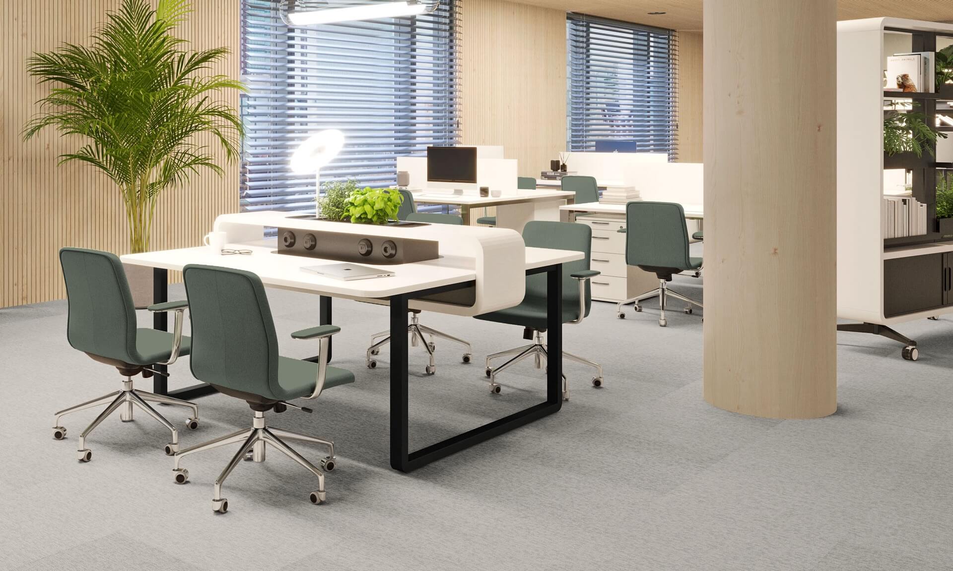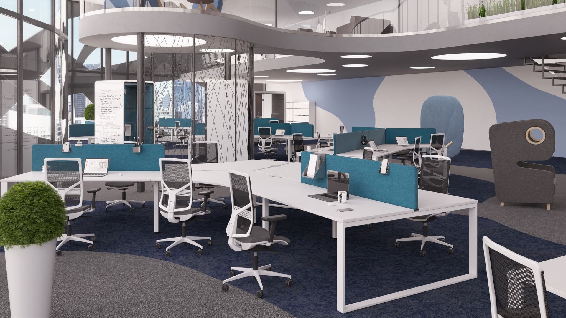 Nowoczesne rozwiązania, idealne do przestrzeni biurowych typu open space, które wspierają współpracę i efektywne wykorzystanie przestrzeni. Wspólny stelaż jest rozwiązaniem bardziej ekonomicznym, o lepszej estetyce, a ponadto ułatwia prowadzenie okablowania wzdłuż stanowisk ptracy. Występują w różnych rozmiarach i mają możliwość multiplikowania miejsc pracy poprzez wydłużanie o kolejny moduł. Najczęściej stosuje się je w komplecie ze ścianką rozdzielającą siedzące naprzeciw siebie osoby. Dzięki stanowiskom bench można zaoszczędzić miejsce, zachowując jednocześnie wygodę i ergonomię pracy. Zapytaj o projekt – pomożemy dostosować moduły i kolorystykę do wymagań Twojego zespołu.