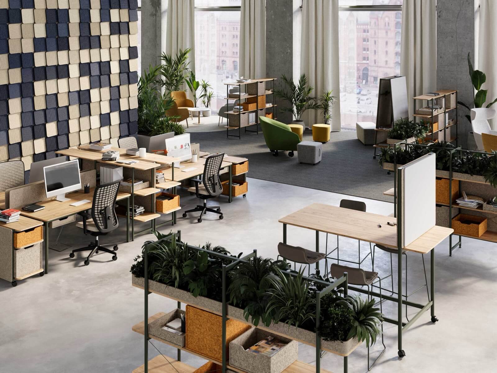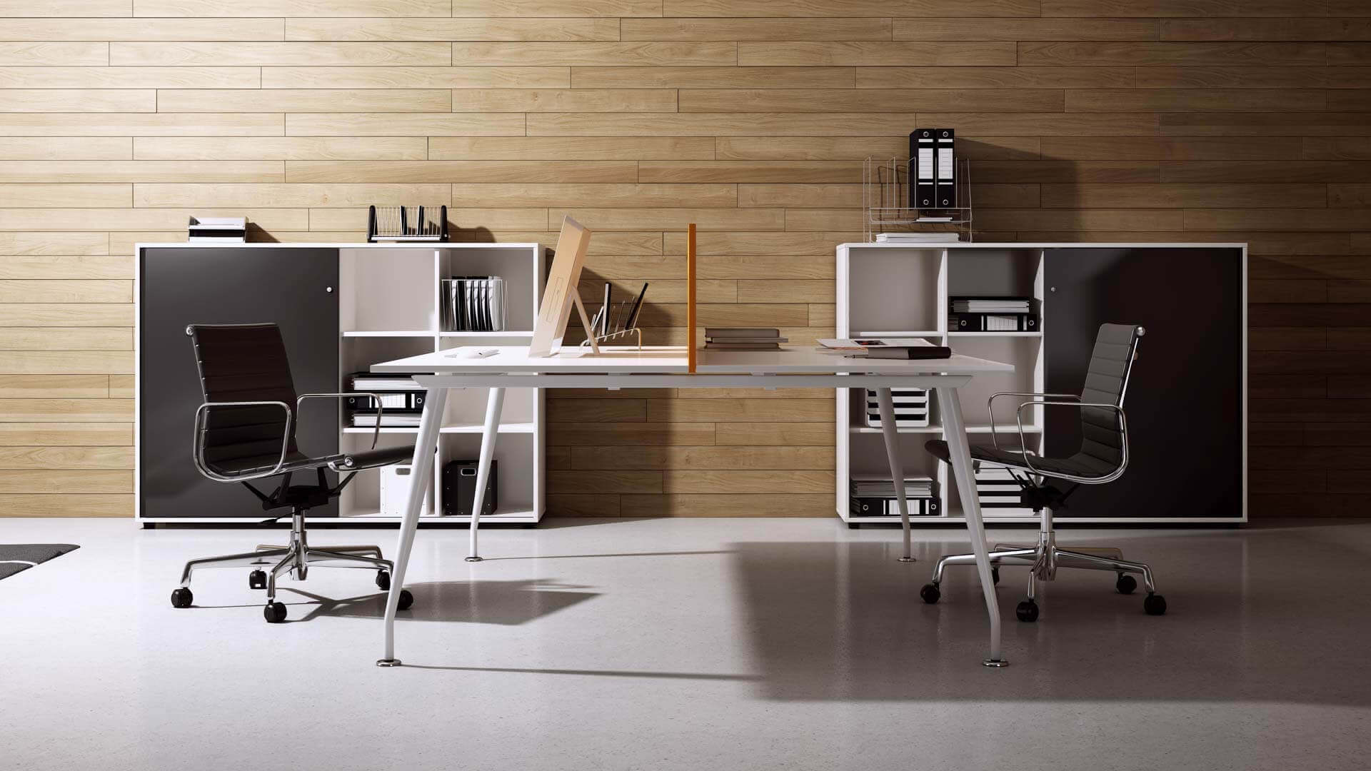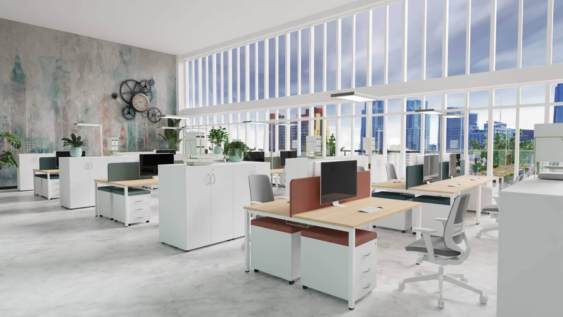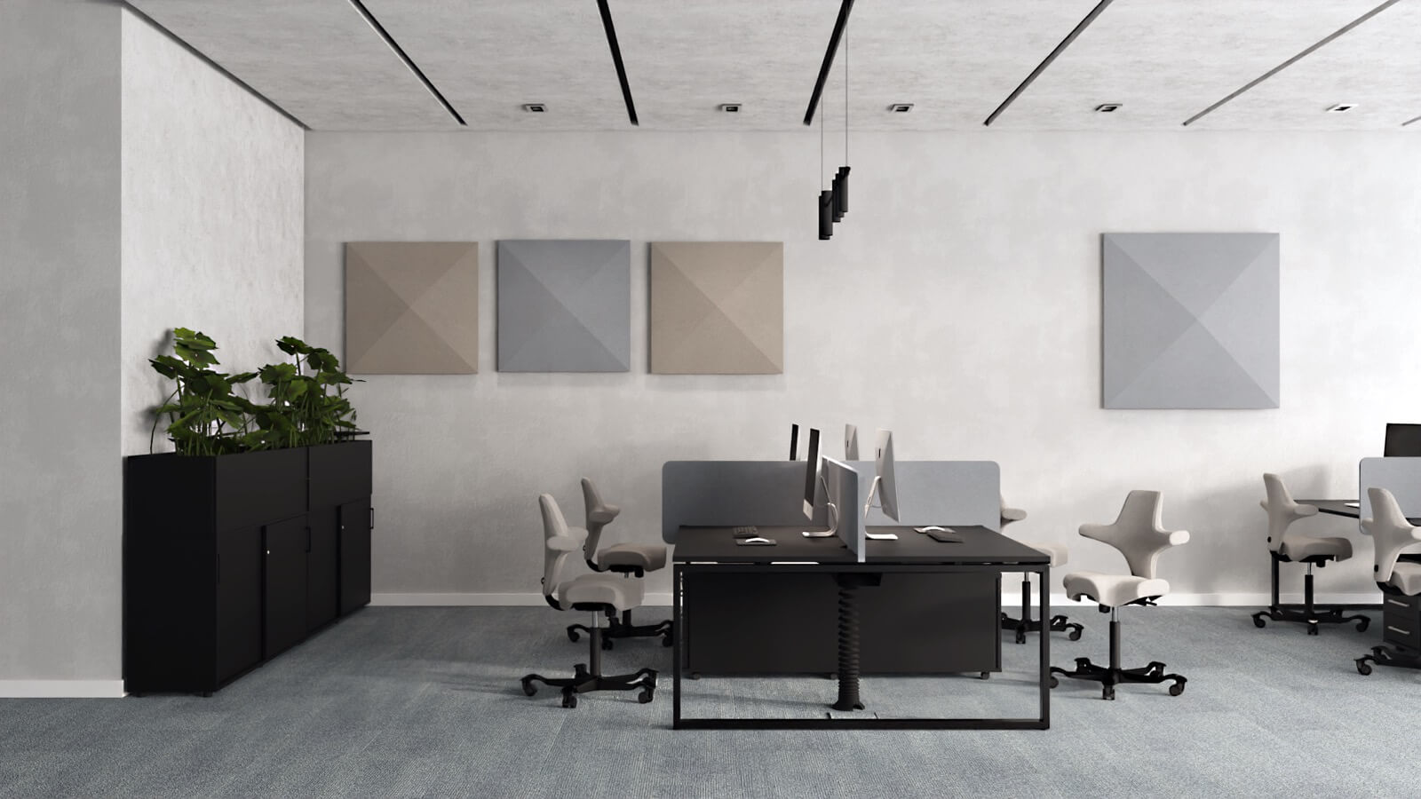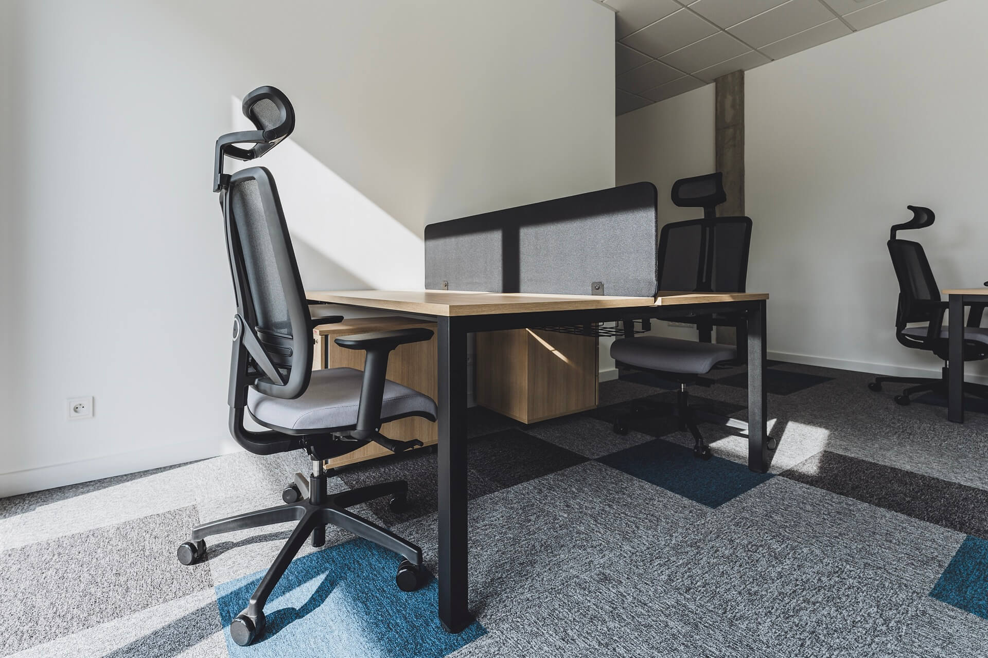 Nowoczesne rozwiązania, idealne do przestrzeni biurowych typu open space, które wspierają współpracę i efektywne wykorzystanie przestrzeni. Wspólny stelaż jest rozwiązaniem bardziej ekonomicznym, o lepszej estetyce, a ponadto ułatwia prowadzenie okablowania wzdłuż stanowisk ptracy. Występują w różnych rozmiarach i mają możliwość multiplikowania miejsc pracy poprzez wydłużanie o kolejny moduł. Najczęściej stosuje się je w komplecie ze ścianką rozdzielającą siedzące naprzeciw siebie osoby. Dzięki stanowiskom bench można zaoszczędzić miejsce, zachowując jednocześnie wygodę i ergonomię pracy. Zapytaj o projekt – pomożemy dostosować moduły i kolorystykę do wymagań Twojego zespołu.