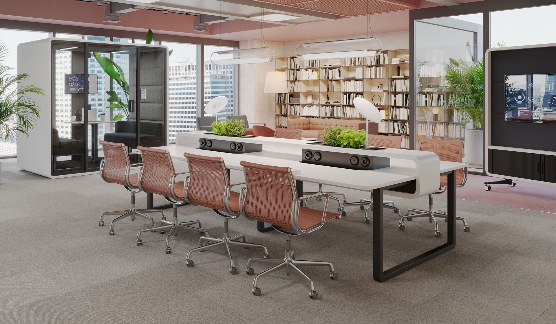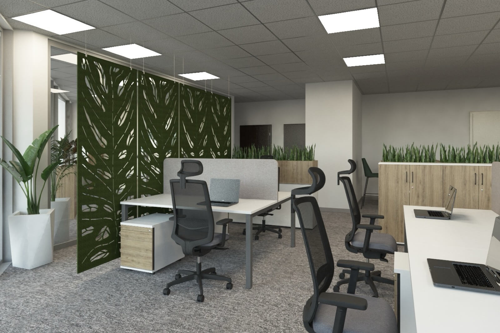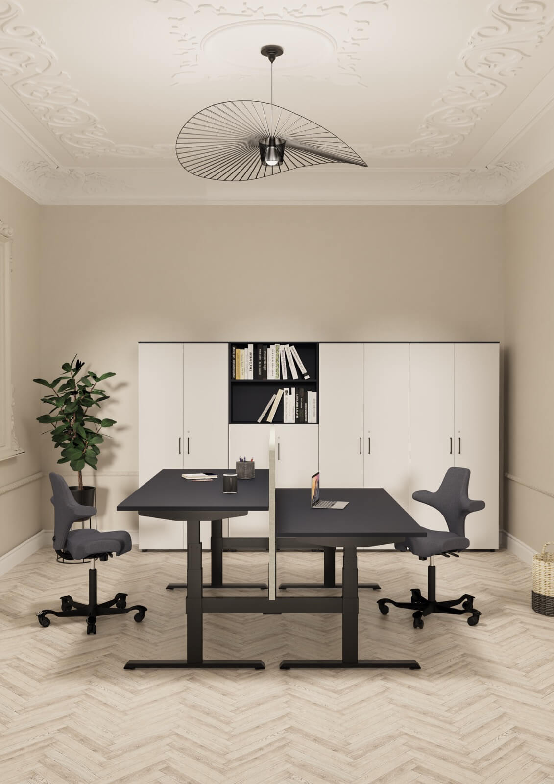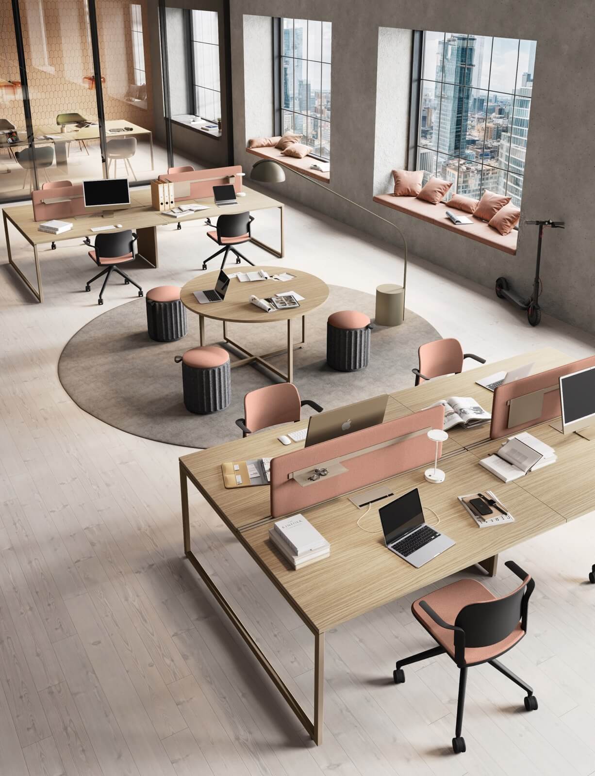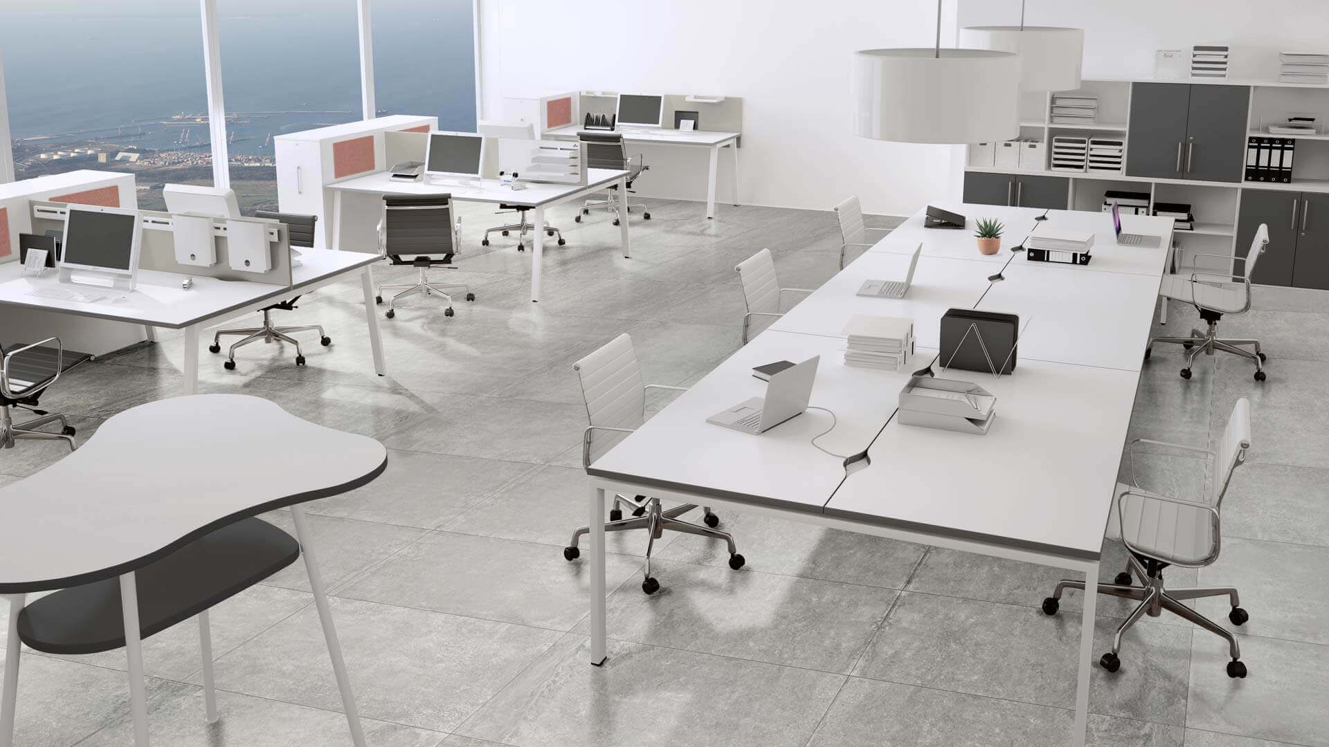 Nowoczesne rozwiązania, idealne do przestrzeni biurowych typu open space, które wspierają współpracę i efektywne wykorzystanie przestrzeni. Wspólny stelaż jest rozwiązaniem bardziej ekonomicznym, o lepszej estetyce, a ponadto ułatwia prowadzenie okablowania wzdłuż stanowisk ptracy. Występują w różnych rozmiarach i mają możliwość multiplikowania miejsc pracy poprzez wydłużanie o kolejny moduł. Najczęściej stosuje się je w komplecie ze ścianką rozdzielającą siedzące naprzeciw siebie osoby. Dzięki stanowiskom bench można zaoszczędzić miejsce, zachowując jednocześnie wygodę i ergonomię pracy. Zapytaj o projekt – pomożemy dostosować moduły i kolorystykę do wymagań Twojego zespołu.
